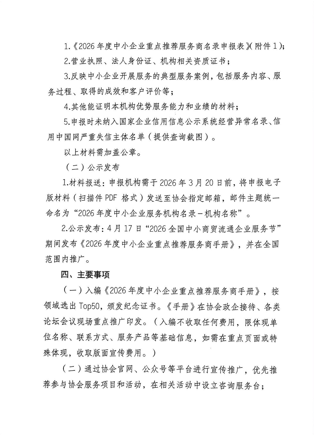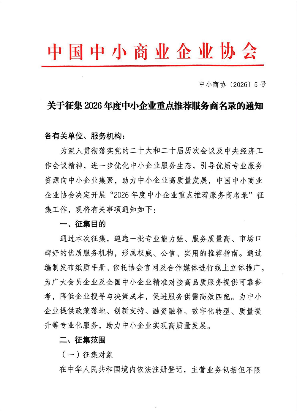关于征集2026年度中小企业重点推荐服务商名录的通知