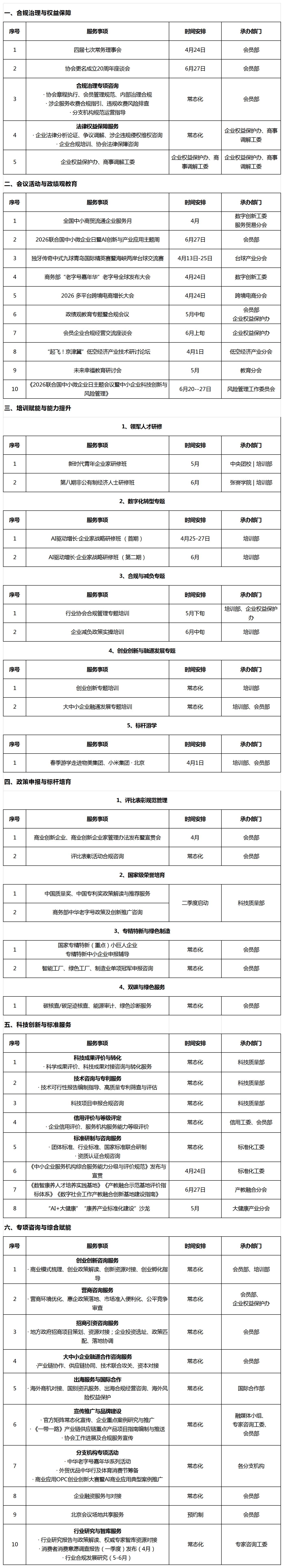 中国中小商业企业协会2026年二季度服务清单