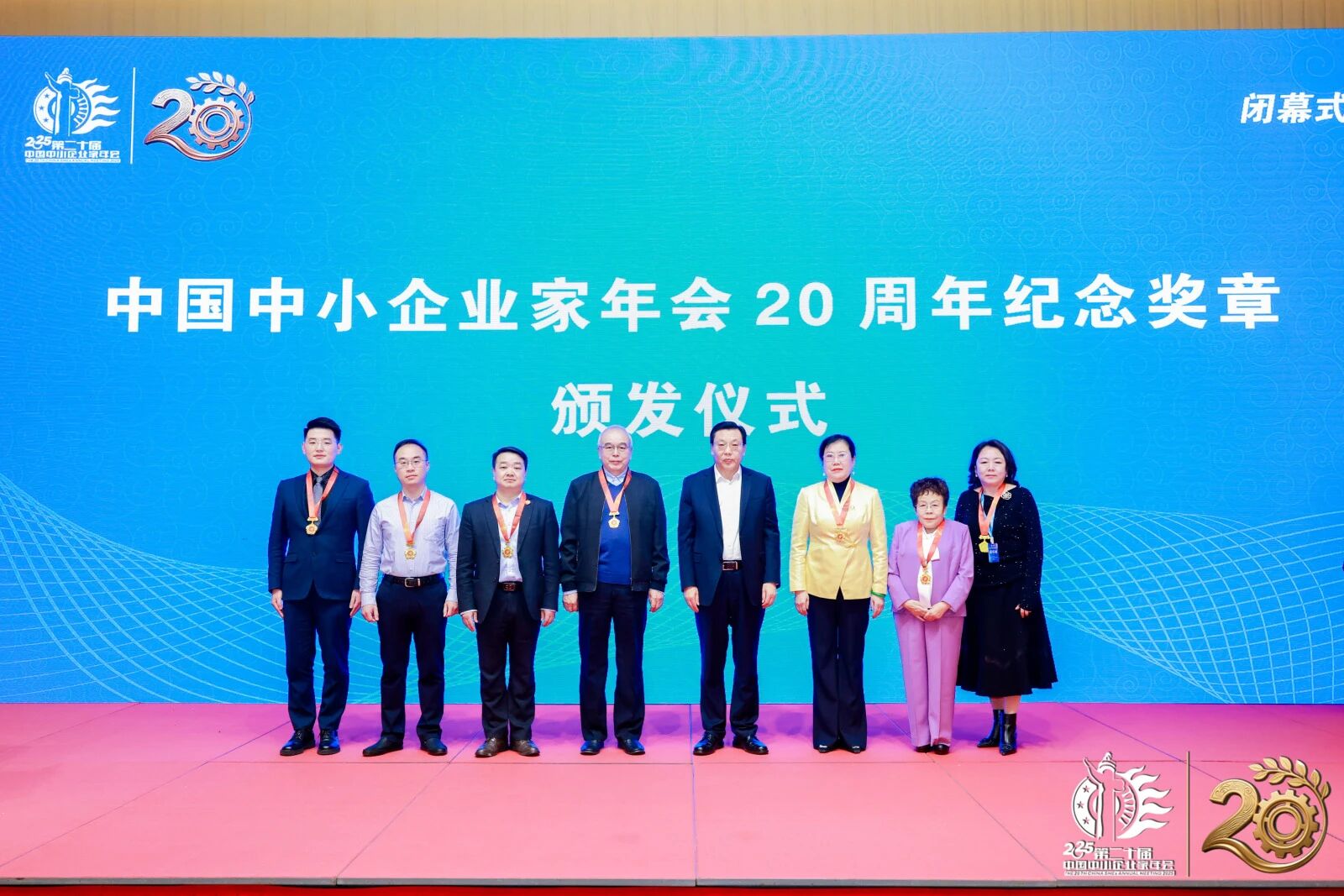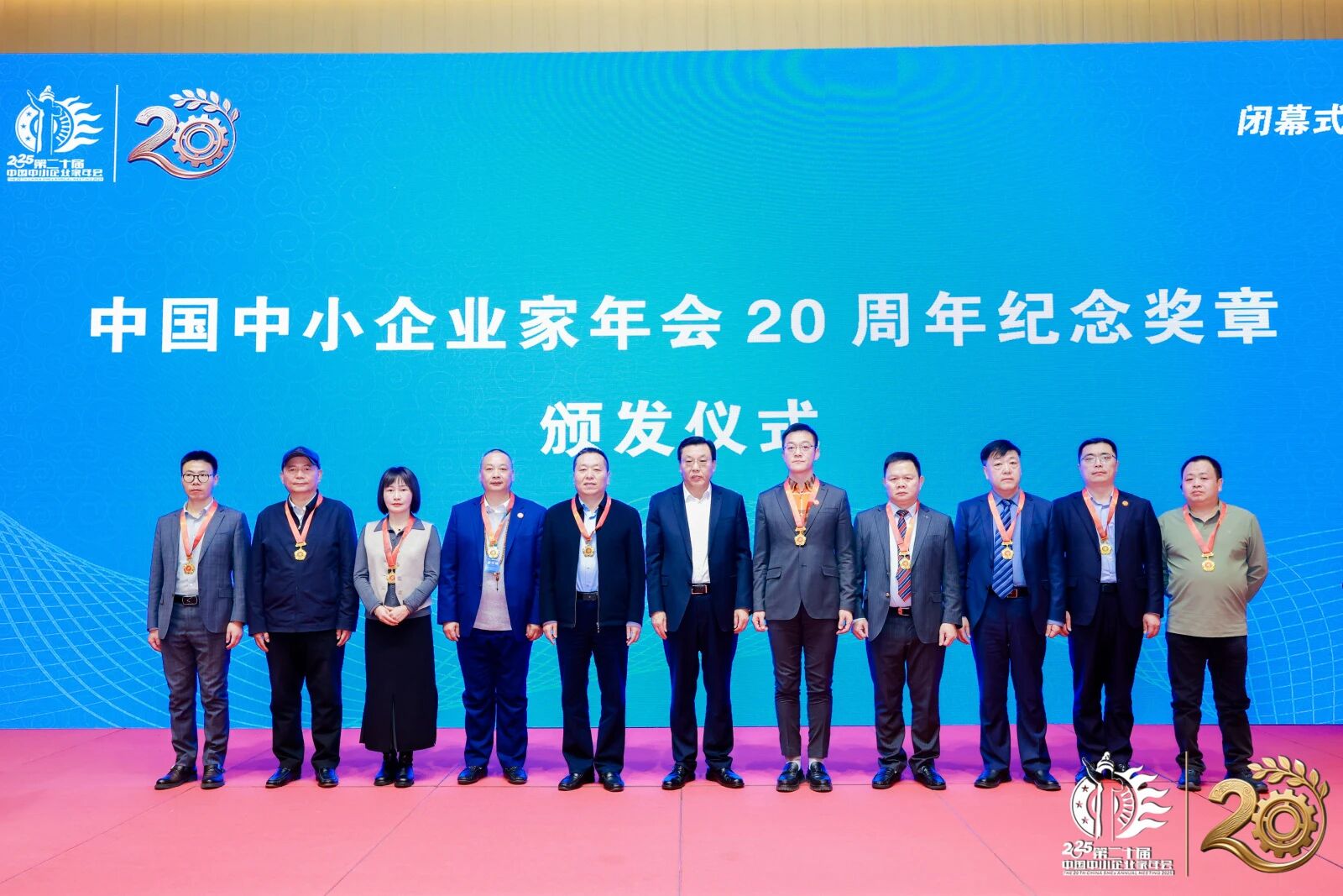 闭幕式伊始,大会颁发了“中国中小企业家年会20年纪念奖章”。这枚沉甸甸的奖章,不仅是对长期陪伴年会成长、为中国中小企业发展事业做出卓越贡献的杰出人士的崇高致敬,更凝聚了二十年来中国中小企业界风雨同舟、砥砺前行的深厚情谊与奋斗精神,激励着后来者接续奋斗。